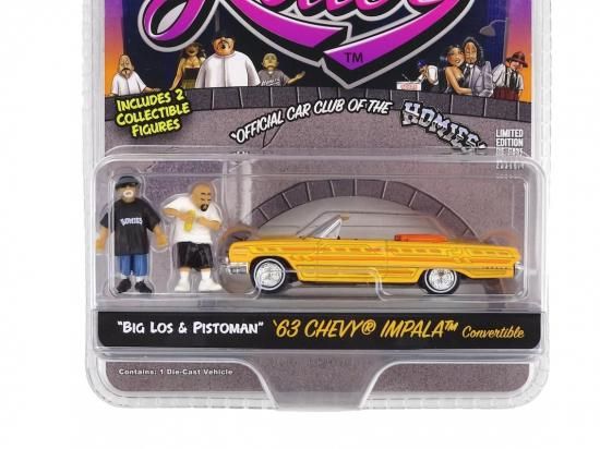 Homie Rollerz 1:64 Diecast 1963 Chevy Impala SS Convertible w/ Big Los & Pistoman